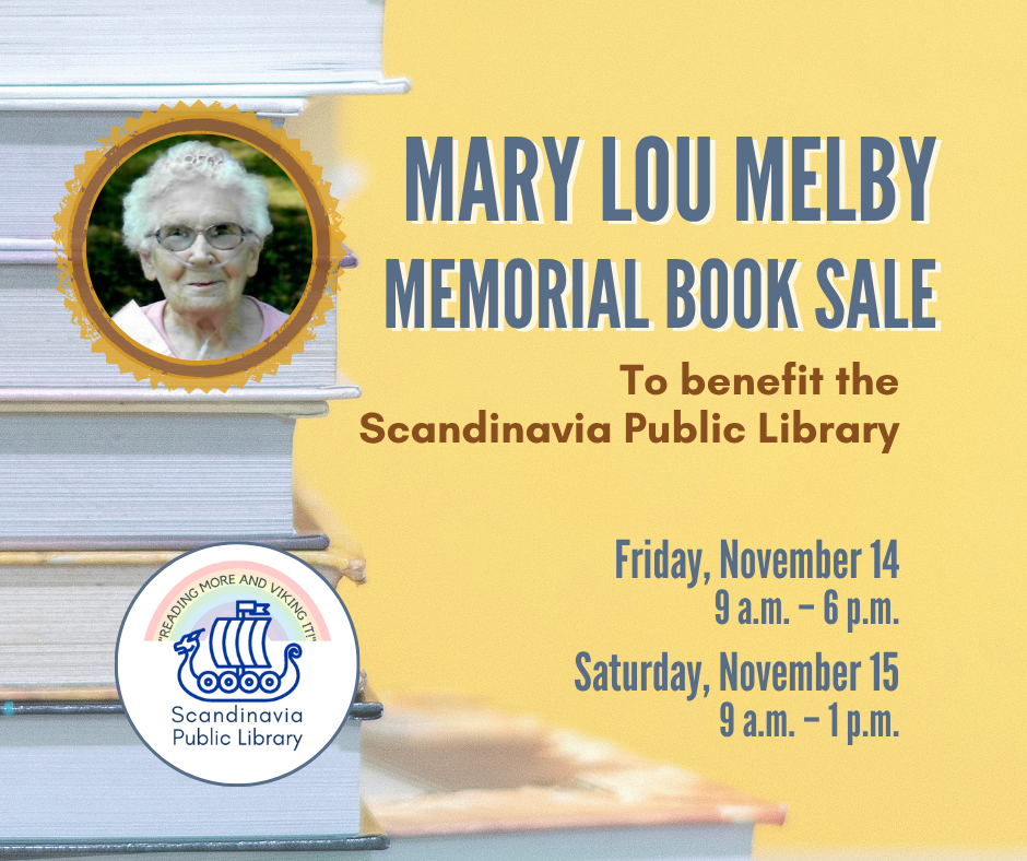 Celebrate the life of local resident Mary Lou Melby during this 2-day memorial book sale! Mary Lou was a great supporter of the Scandinavia Public Library. She loved exploring her interests and satisfying her curiosity through the library’s collections, and delighted staff with her jovial sense of humor and positive outlook. As a life-long, avid […]