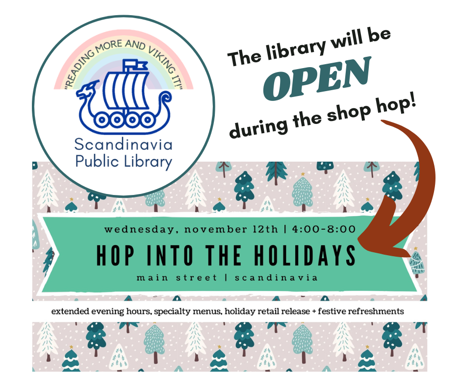 Take a few minutes during the Scandinavia Holiday Shop Hop, taking place from 4–8 p.m. on Wednesday, November 12, to stop by the library, rest your feet, and regroup before continuing your holiday kick-off fun! The library will be open during this event with puzzles and games for everyone to enjoy. Limited seating will be […]